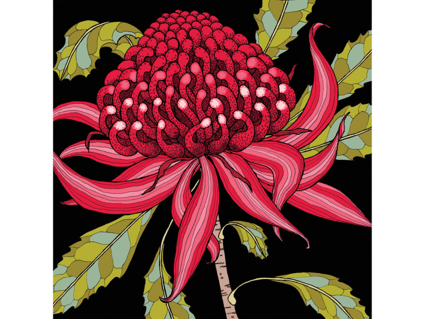 - LB0023 WILD AUSTRALIA "Waratah" greeting card & envelope. 155mm x 155mm