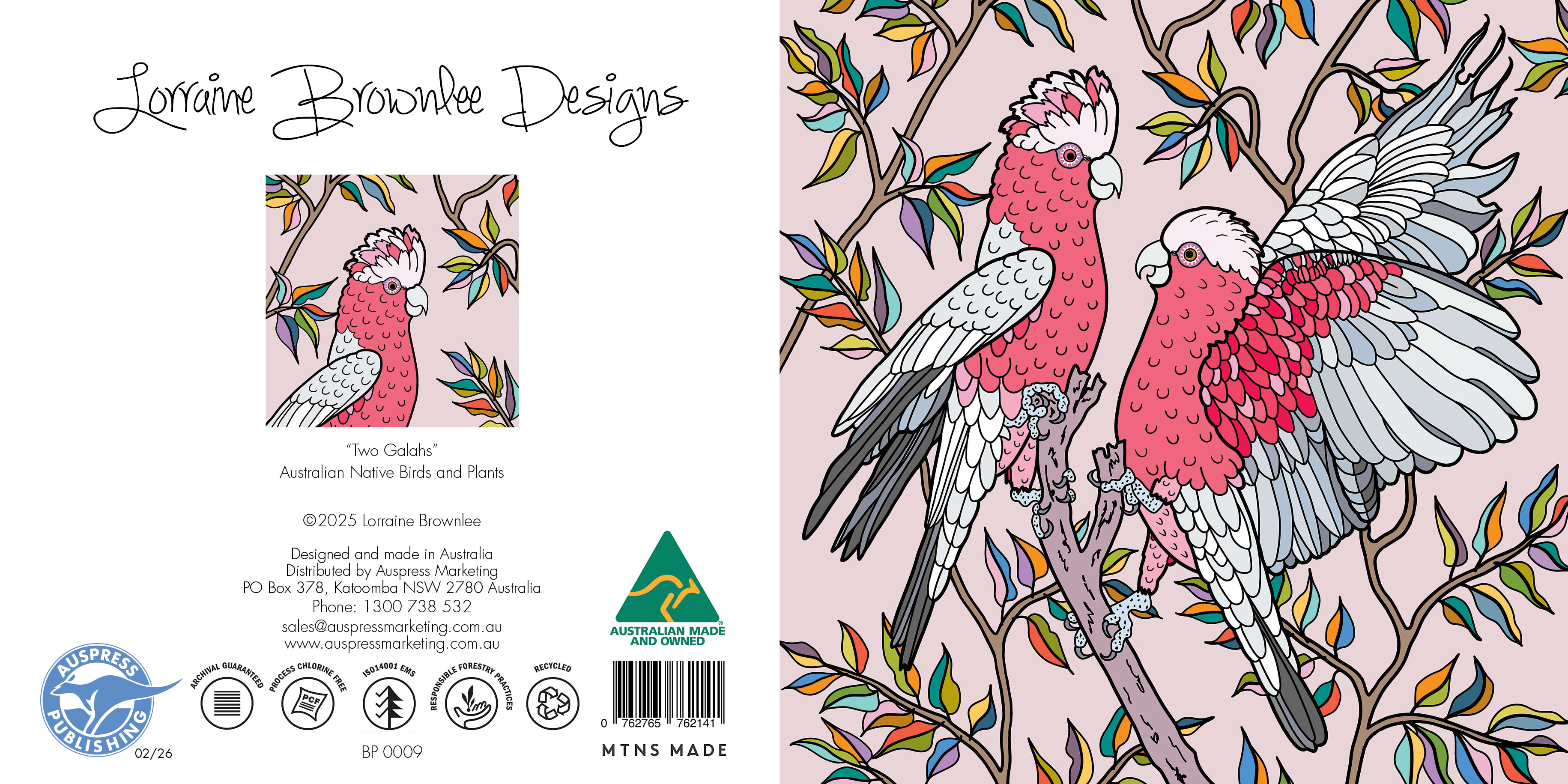 - BP 009 Two Galahs Native Plant and Bird Greeting Card 155mm x 155mm