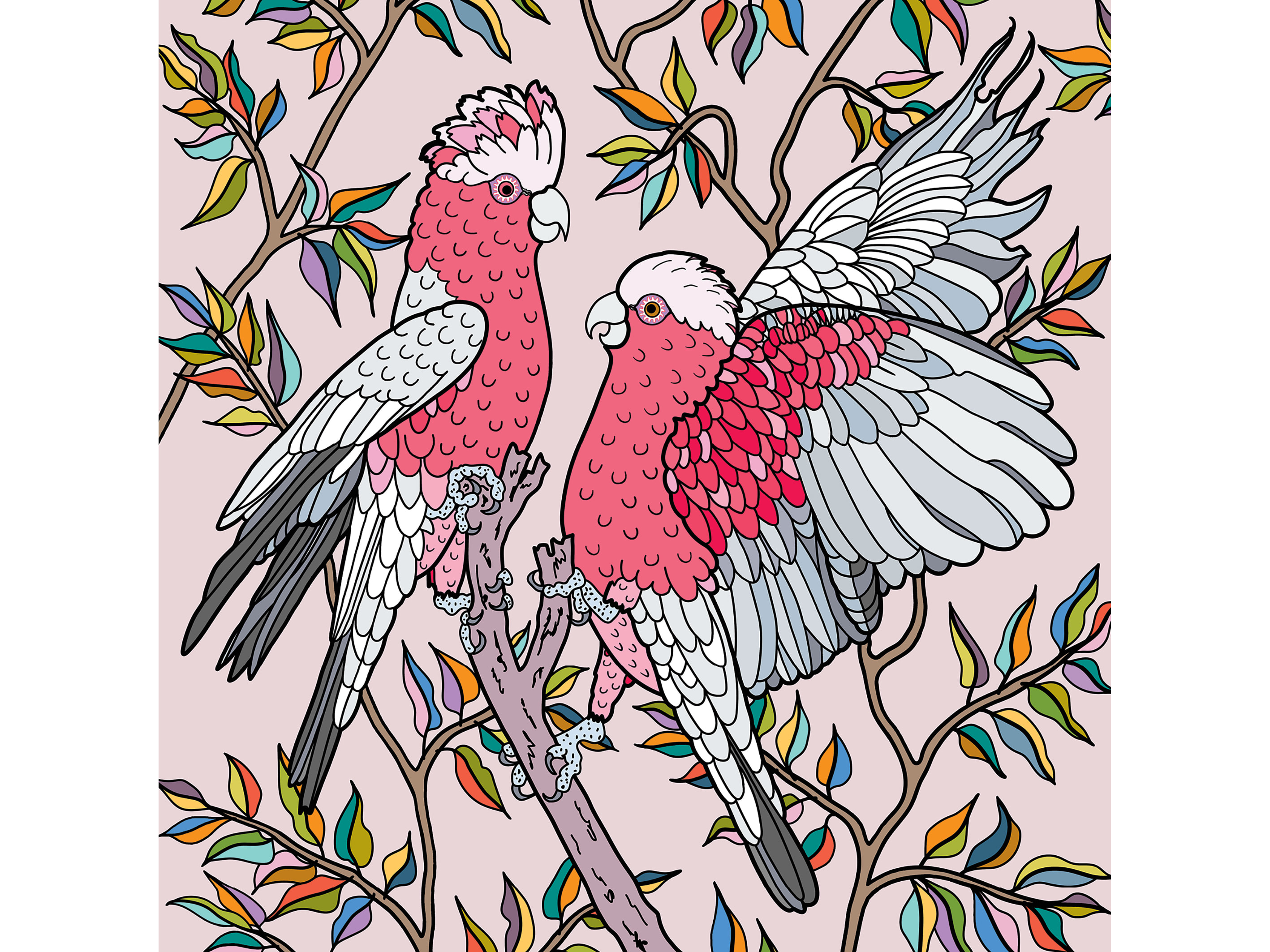 BP 009 Two Galahs Native Plant and Bird Greeting Card 155mm x 155mm