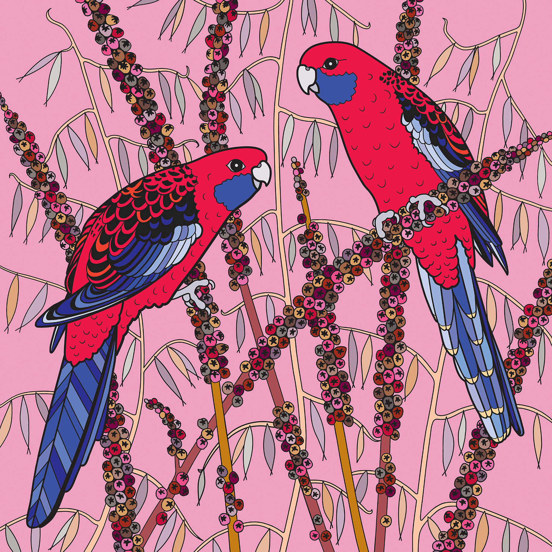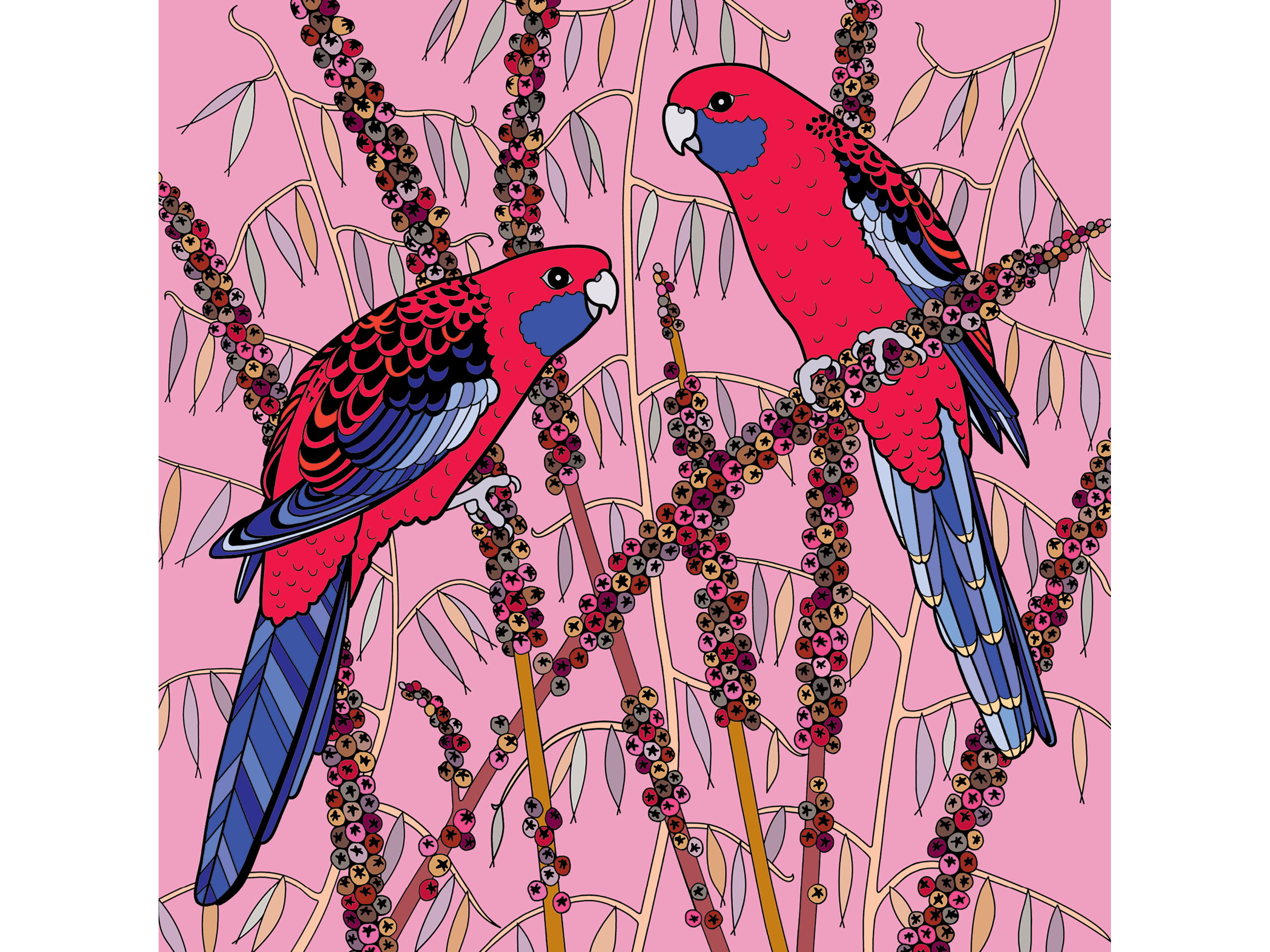 BP 011 Crimson Rosellas Native Plant and Bird Greeting Card 155mm x 155mm